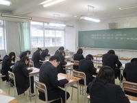 1年生は、来年度から各コース別に学習していくことに備え、2年生は、来年度受験生になる前の早期対策として、受験しました。学年末が近づいていることもあり、生徒はより一層集中力と緊張感を高め、模擬試験に臨んでいました。
