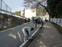 4月7日(月)17:30から、川本町職員の皆様と島根中央高校教職員の総数80人以上で、高校前の登校路を清掃しました。これは、川本町役場に企画していただいた活動です。清掃前は雑草、落ち葉、枝、砂等が散乱していた登校路が、本当にきれいになりました。