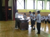 7月25日(金) 1・2限授業・大掃除の後、体育館で1学期の表彰式・終業式を行いました。