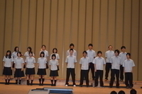 合唱コンクールでは、各クラスの生徒が、校歌と課題曲をそれぞれ熱唱しました。伴奏者と指揮者の生徒も、大きな舞台で本当によく頑張りました。審査の結果、2年1組が最優秀賞を受賞しました。