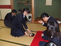 2年生は、学年末には先生方を招いたお茶会を行い、授業のまとめとします。