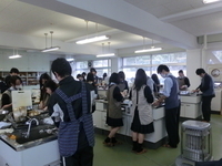 生徒は、一致協力し見事なチームワークで角寿司とみたらし団子を完成させ、試食した教職員は、「とても、おいしい!」と絶賛していました。