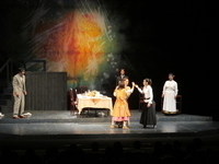 7月4日(木)に悠邑ふるさと会館で芸術鑑賞会を行いました。本校は3年に1回芸術鑑賞会を実施しています。今回は、東京演劇集団風の皆さんによる『ヘレン・ケラー~ひびき合うものたちへ』を、全校生徒が鑑賞しました。生徒は、ヘレン・ケラーが家族に見守られながら、サリバン先生に心を開いていくところに感銘を受けていました。劇の終了後に、生徒会副会長が「皆さんの迫真の演技が心に響きました」と挨拶し、花束を贈呈しました。東京演劇集団風のサリバン先生役を演じられた稲葉礼恵さんが、「皆さん一人一人がヘレン・ケラーとサリバンに対して、色々な思いや考え方を持ってもらえると幸いです。皆さんの高校生活がより充実していくことを願います」とメッセージを送ってくださいました。