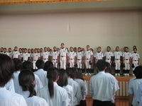 7月9日(火)本校体育館にて、第95回全国高等学校野球選手権記念島根大会に出場する本校野球部の壮行式を行いました。最初に、岩町教頭が「皆さんの練習量には圧倒されています。練習量と力量が同じであれば、最後は心の勝負になります。今まで支えてくださった保護者や地域の方々に感謝して頑張ってください。」と激励の言葉を送りました。その後、生徒会長が「野球部の皆さんは毎日の厳しい練習を耐え抜いてきました。その努力の成果を試合で発揮できることを願います。」と激励の言葉を述べた後で、生徒会から激励の品が野球部代表生徒に手渡されました。