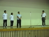 9月25日(水)、本校体育館にて、東京都での国体に出場するカヌー部生徒2名と、広島市での中国新人陸上大会に出場する陸上競技部生徒1名に対して、壮行式を開きました。
