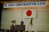 福間俊行校長は、式辞の中で「高校時代は人生の土台を作る大切な時期であり、勉強や部活動をはじめとする学校生活に積極的に取り組むことで、判断力や協調性、コミュニケーション能力などを身につけてもらいたい。福沢諭吉は『進まざるものは必ず退き、退かざるものは必ず進む』と述べています。進歩しよう、成長しようと思わないと後退してしまいます。島根中央高校での3年間は、困難に負けず、『退かないものは必ず進歩する』という信念を持ち、頑張ってほしい」と新入生を激励しました。
