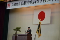 来賓祝辞では、川本町副町長松井紹憲様に、川本町長三宅実様の祝辞を代読していただき、「豊かな自然、古き良き伝統文化、温かい絆のあるこの地で、学習、部活動、地域ぐるみの積極的な交流を通して自分の可能性を広げてもらいたい。島根中央高校での多くの出会いと一つ一つの努力の積み重ねが実を結び、皆さんの夢が実現すると確信します」という言葉をいただきました。