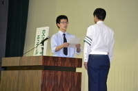 5月26日(火)本校体育館にて、川本警察署・邑智郡交通安全協会より「平成27年度交通マナーアップモデル指定校」と「平成27年度鍵かけ運動推進モデル指定校」の指定を受けました。