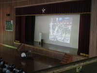 指定式の後、川本警察署による交通安全教室が行われました。図や画像、動画等を用いて、大変分かりやすく自転車の安全運転のために心がけることを説明していただき、交通安全に対する意識向上のよい機会となりました。
