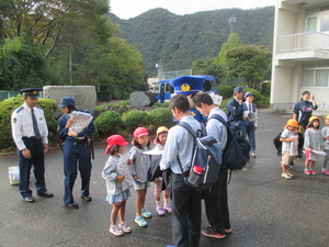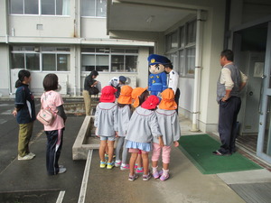 10月17日(月)の放課後、川本保育所の園児6名と川本警察署の署員の方が本校を訪れ、自転車の鍵かけ啓発活動を行いました。園児たちは下校する本校の生徒たちに「鍵をかけてください」と声掛けするとともに、自転車ワイヤーなどが入った啓発グッズを手渡しました。